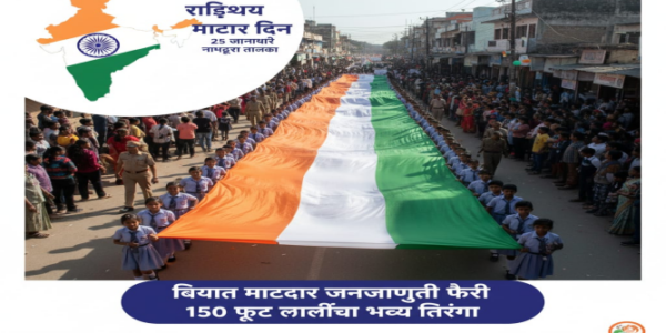 भारतीय ज्ञानपीठ शाळेपासून होणार प्रारंभ; तहसीलदार अजितराव जंगम यांचे नागरिकांना सहभागाचे आवाहन नांदुरा:भारतीय लोकशाहीचा उत्सव आणि राष्ट्रीय मतदार दिनाचे औचित्य साधून नांदुरा शहरात दिनांक २५ जानेवारी २०२६ रोजी एका ऐतिहासिक आणि अभूतपूर्व *’तिरंगा महारॅली’*चे आयोजन करण्यात आले आहे. या रॅलीचे…