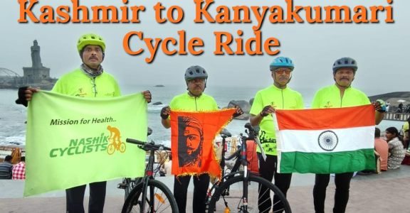 प्रवीण कोकाटे, दिनकर पाटील, संजय राऊत, श्रीकृष्ण आवारे यांच्यावर अभिनंदनचा वर्षाव नाशिक । येथूल नाशिक सायकलिस्ट फाउंडेशनच्या चार सायकलिस्टने राष्ट्रीय एकात्मतेचा संदेश देत “हम फिट तो इंडिया फिट” हा नारा घेऊन काश्मीर ते कन्याकुमारी अशी सुमारे ३८०० कि.मी.ची भव्य सायकल…