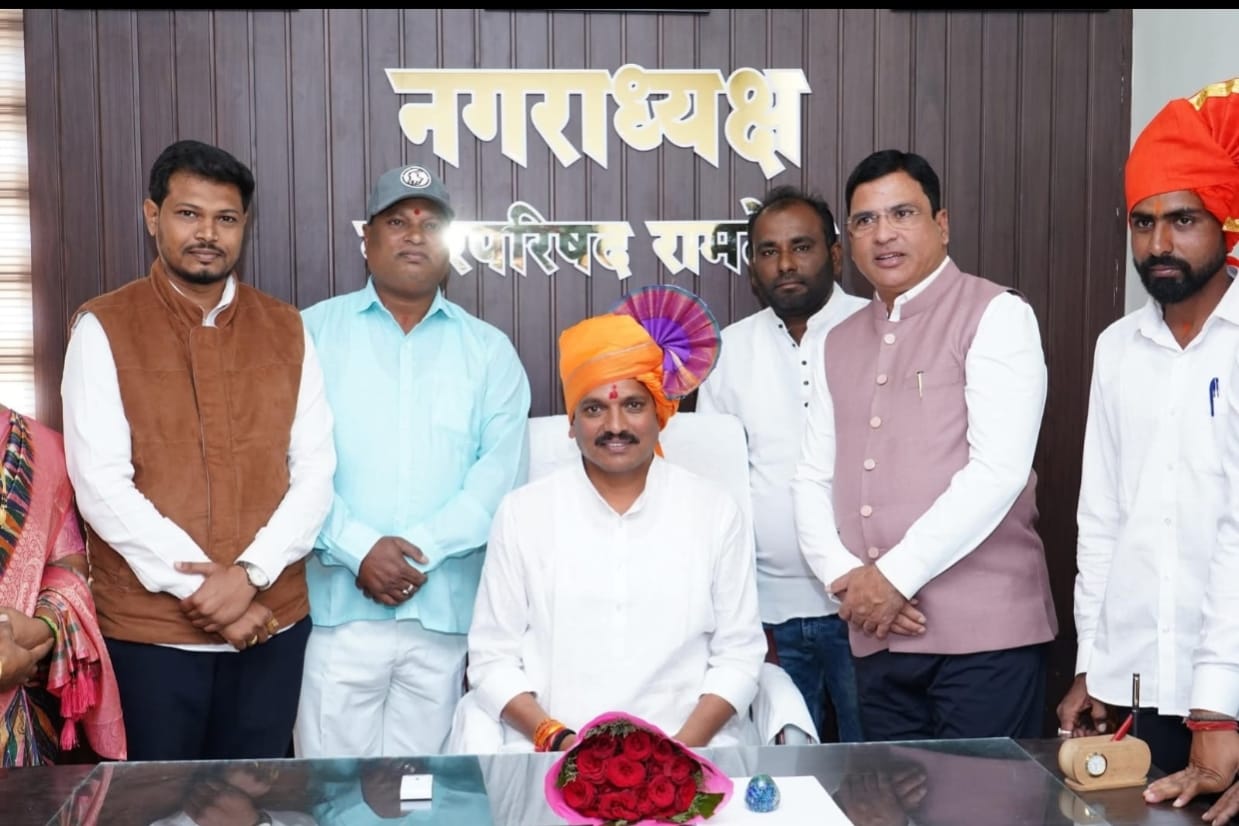 रामटेक (प्रतिनिधी)नगर परिषद रामटेकच्या सार्वत्रिक निवडणुकीत विजय संपादन केल्यानंतर आज राज्यमंत्री आशिष जयस्वाल यांच्या प्रमुख उपस्थितीत नवनियुक्त नगराध्यक्ष बिकेंद्र महाजन यांच्यासह दहा प्रभागांतील नगरसेवकांचा पदग्रहण सोहळा मोठ्या उत्साहात पार पडला. यावेळी नगरपरिषद मुख्याधिकारी पल्लवी राऊत, पारशिवनी नगरपंचायतीच्या नगराध्यक्ष सुनिता प्रकाश डोमकी यांच्यासह मान्यवर उपस्थित होते.