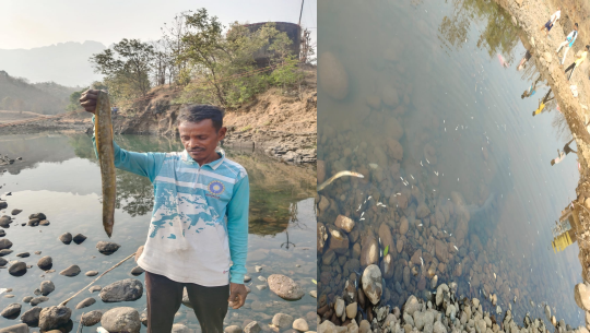 फांगुळगव्हाण ग्रामपंचायत हद्दीत पिण्याच्या पाण्यात विषारी औषध ओतल्याने नदीपात्रात मृत मासे तरंगले