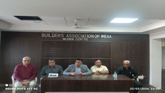 नाशिक । बिल्डर्स असोसिएशन ऑफ इंडिया (बी.ए.आय.) नाशिक सेंटर आणि AAA एन्टरप्रायजेस पुणे यांच्या संयुक्त विद्यमाने “बिल्ड एक्स्पो २०२६” या भव्य प्रदर्शनाचे आयोजन २६ ते २८ फेब्रुवारी दरम्यान करण्यात आले आहे. हे प्रदर्शन श्रद्धा लॉन्स, जुना गंगापूर नाका, नाशिक येथे होणार असल्याची माहिती मानद सचिव तसेच बिल्ड एक्स्पो–२०२६ चे निमंत्रक अविनाश बी. आव्हाड यांनी दिली. यावेळी बी.ए.आय. नाशिक सेंटरचे अध्यक्ष मनोज खांडेकर उपस्थित होते.