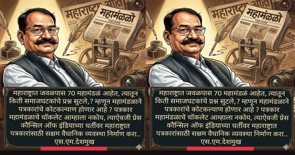 ​मुंबई | प्रतिनिधी:राज्यातील पत्रकारांच्या न्याय्य हक्कासाठी महामंडळ स्थापन करण्याची घोषणा म्हणजे निव्वळ ‘चॉकलेट’ असून, त्यातून पत्रकारांचे मूळ प्रश्न सुटणार नाहीत. त्याऐवजी ‘प्रेस कौन्सिल ऑफ इंडिया’च्या धर्तीवर महाराष्ट्रात उच्च न्यायालयाच्या निवृत्त न्यायमूर्तींच्या अध्यक्षतेखाली सक्षम वैधानिक व्यवस्था निर्माण करावी, अशी आग्रही मागणी अखिल भारतीय मराठी पत्रकार परिषदेचे मुख्य विश्वस्त एस.एम. देशमुख यांनी मुख्यमंत्री देवेंद्र फडणवीस यांच्याकडे केली आहे.